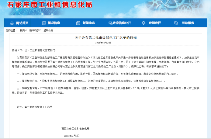 蛇年伊始,開門迎喜訊!2月7日,石家莊市工業(yè)和信息化局正式公布了第二批市級綠色工廠名單,河北拓普電氣股份有限公司憑借其在綠色制造、節(jié)能減排以及可持續(xù)發(fā)展領域的卓越表現(xiàn),成功躋身其中,榮獲石家莊市級綠色工廠稱號!這一榮譽不僅是對拓普電氣多年來堅持綠色發(fā)展的肯定,更是對其未來持續(xù)創(chuàng)新的激勵。